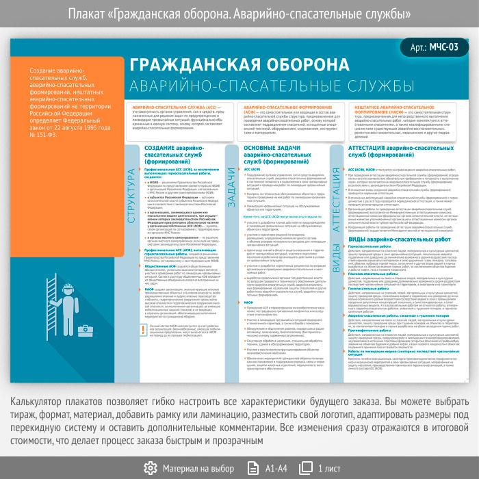 Плакат «Гражданская оборона. Аварийно-спасательные службы» (МЧС-03, 1 лист) в Нижнекамске купить