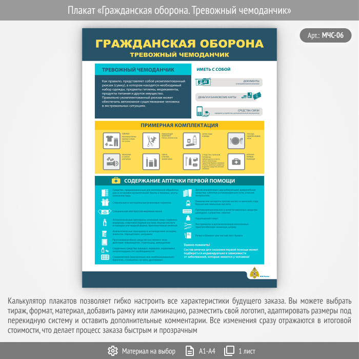 Плакат «Гражданская оборона. Тревожный чемоданчик» (МЧС-06, 1 лист) в Нижнекамске купить