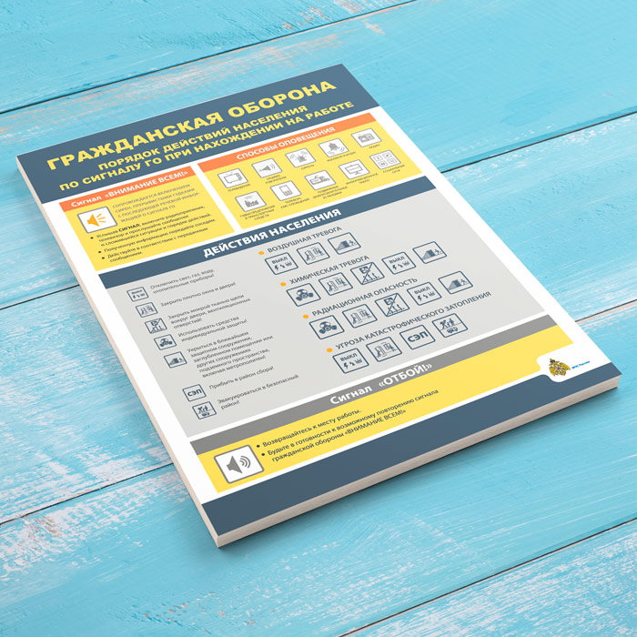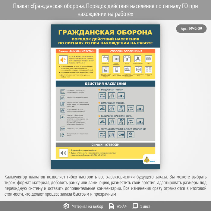 Плакат «Гражданская оборона. Порядок действия населения по сигналу ГО при нахождении на работе» (МЧС-09, 1 лист) в Нижнекамске купить