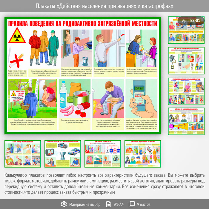 Плакаты «Действия населения при авариях и катастрофах» (ВЗ-01, 9 листов) в Нижнекамске купить