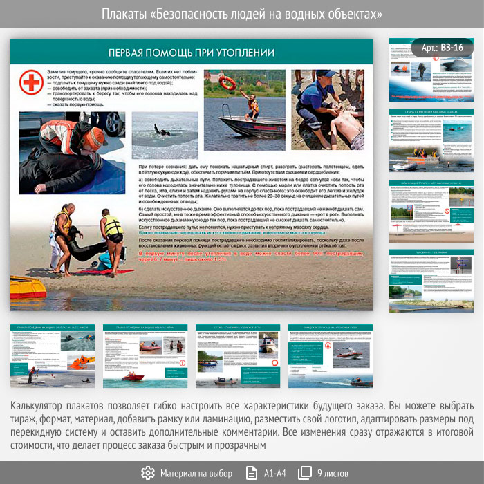 Плакаты «Безопасность людей на водных объектах» (ВЗ-16, 9 листов) в Нижнекамске купить