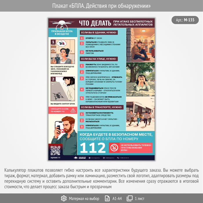 Плакат «БПЛА. Действия при обнаружении» с QR (М-135, 1 лист) в Нижнекамске купить