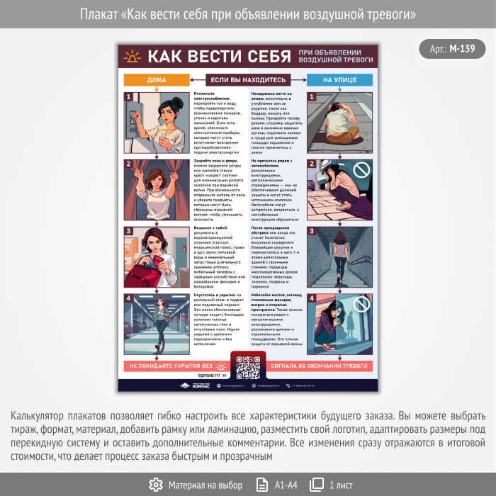 Плакат «Как вести себя при объявлении воздушной тревоги» с QR (М-139, 1 лист) в Нижнекамске купить
