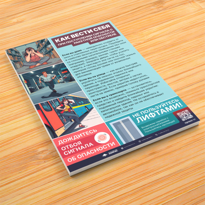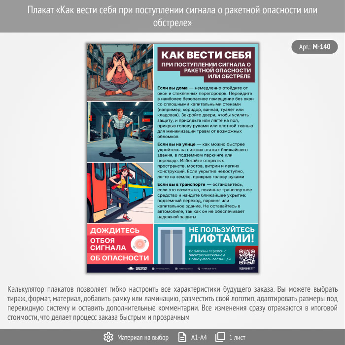 Плакат «Как вести себя при поступлении сигнала о ракетной опасности или обстреле» с QR (М-140, 1 лист) в Нижнекамске купить
