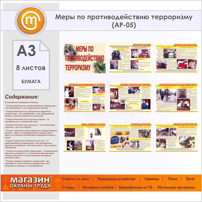 Плакаты «Меры по противодействию терроризму» (АР-05, бумага, А3, 8 листов) в Нижнекамске купить