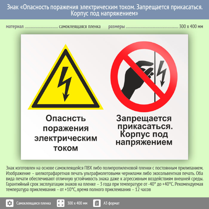 Знак «Опасность поражения электрическим током. Запрещается прикасаться. Корпус под напряжением», КЗ-47 (пленка, 400х300 мм) в Нижнекамске купить