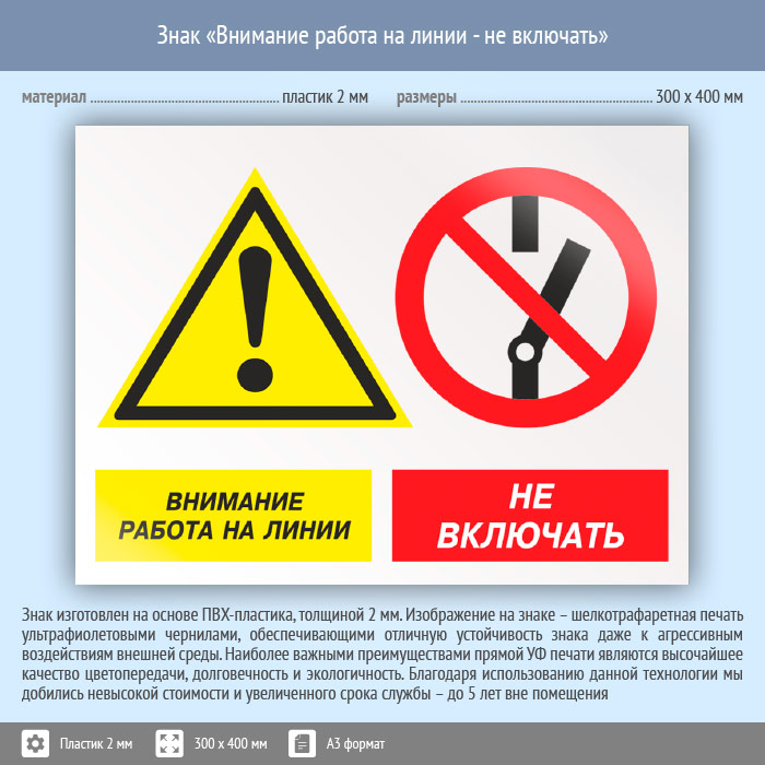 Знак «Внимание работа на линии - не включать», КЗ-16 (пластик, 400х300 мм) в Нижнекамске купить