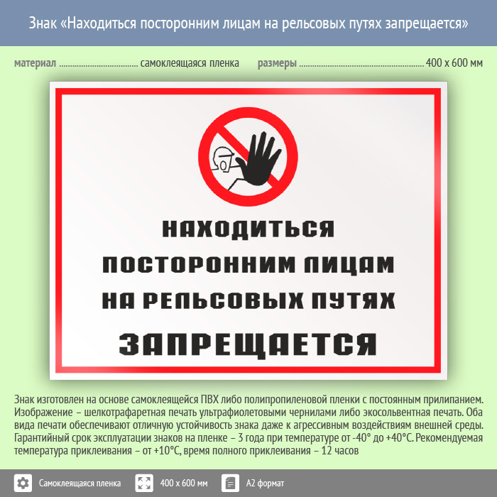 Знак «Находиться посторонним лицам на рельсовых путях запрещается», КЗ-25 (пленка, 600х400 мм) в Нижнекамске купить