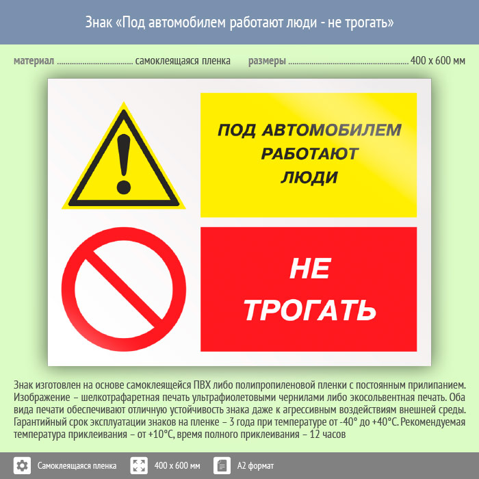 Знак «Под автомобилем работают люди - не трогать», КЗ-66 (пленка, 600х400 мм) в Нижнекамске купить