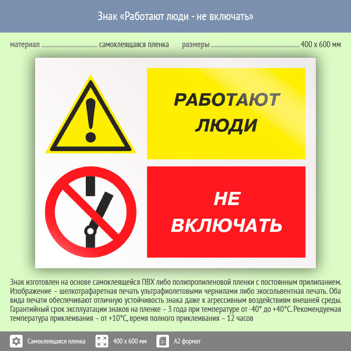 Знак «Работают люди - не включать», КЗ-83 (пленка, 600х400 мм) в Нижнекамске купить