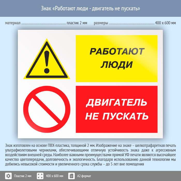 Знак «Работают люди - двигатель не пускать», КЗ-82 (пластик, 600х400 мм) в Нижнекамске купить