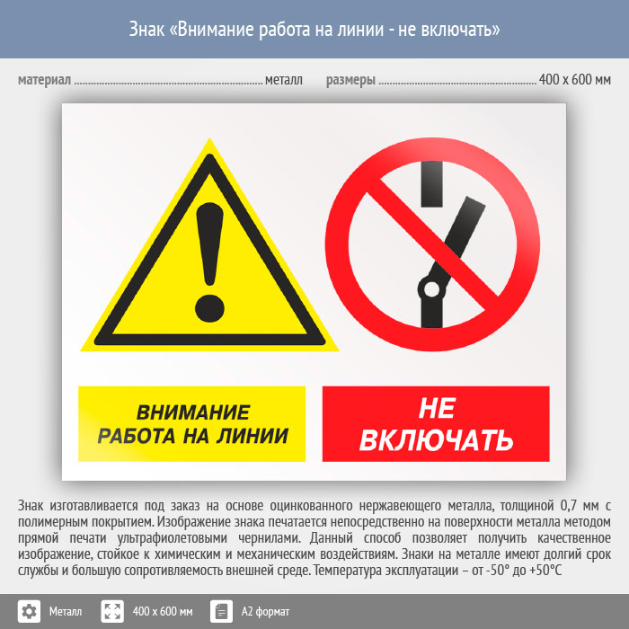 Знак «Внимание работа на линии - не включать», КЗ-16 (металл, 600х400 мм) в Нижнекамске купить