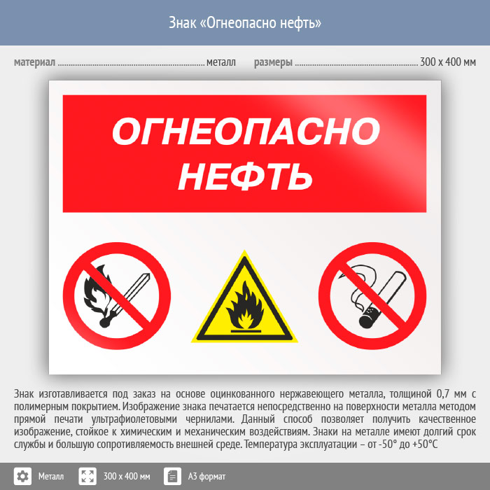 Знак «Огнеопасно нефть», КЗ-31 (металл, 400х300 мм) в Нижнекамске купить