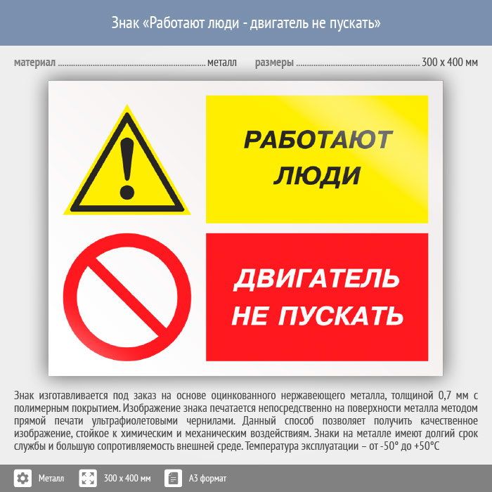 Знак «Работают люди - двигатель не пускать», КЗ-82 (металл, 400х300 мм) в Нижнекамске купить