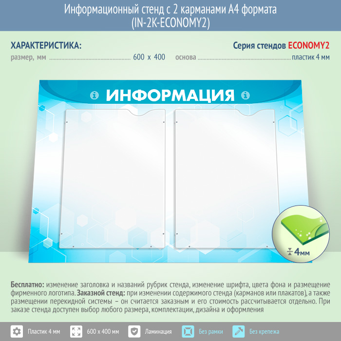 Информационный стенд с 2 карманами А4 формата (IN-2K-ECONOMY2) в Нижнекамске купить