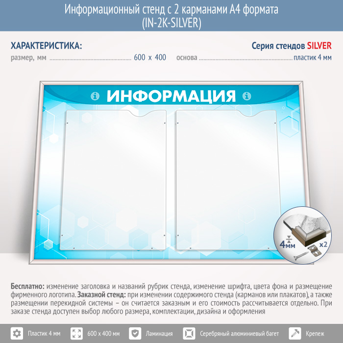 Информационный стенд с 2 карманами А4 формата (IN-2K-SILVER) в Нижнекамске купить