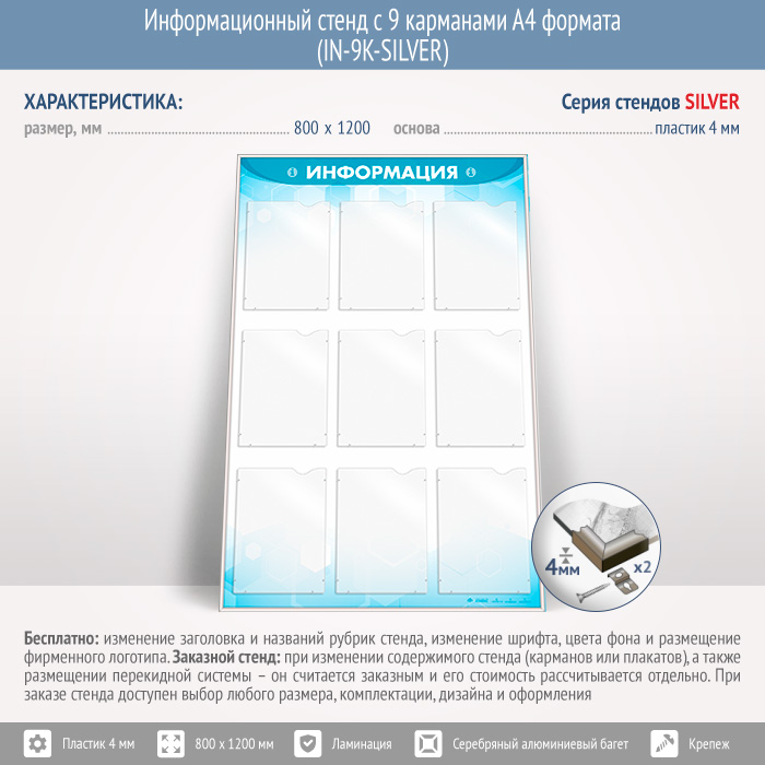 Информационный стенд с 9 карманами А4 формата (IN-9K-SILVER) в Нижнекамске купить