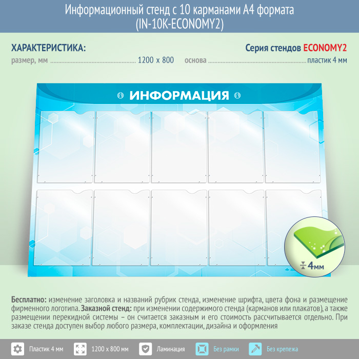 Информационный стенд с 10 карманами А4 формата (IN-10K-ECONOMY2) в Нижнекамске купить