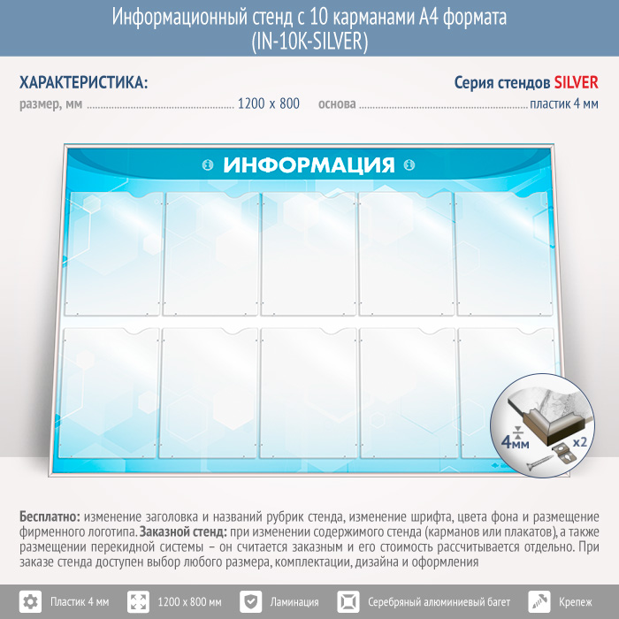 Информационный стенд с 10 карманами А4 формата (IN-10K-SILVER) в Нижнекамске купить
