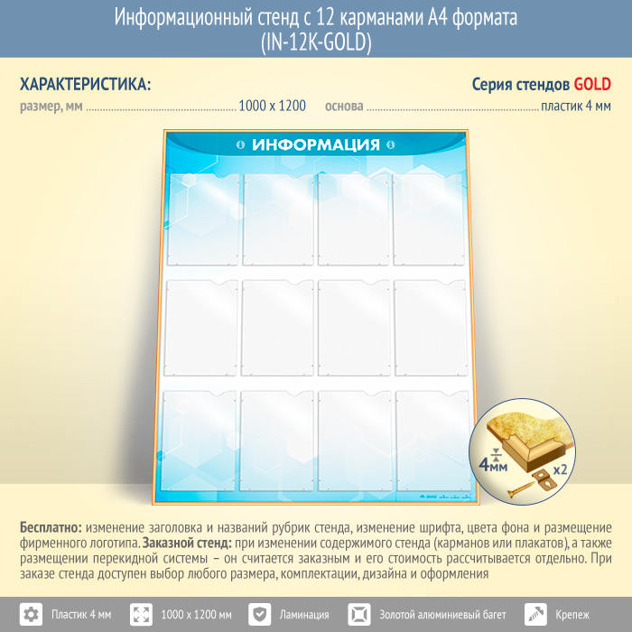 Информационный стенд с 12 карманами А4 формата (IN-12K-GOLD) в Нижнекамске купить
