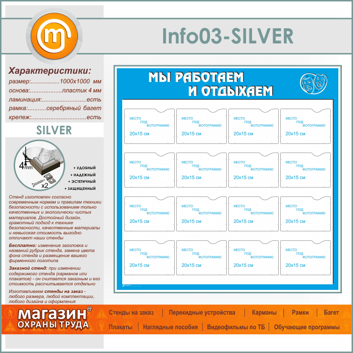 Стенд «Мы работаем и отдыхаем» с 16 карманами А5 формата (IN-03-SILVER) в Нижнекамске купить