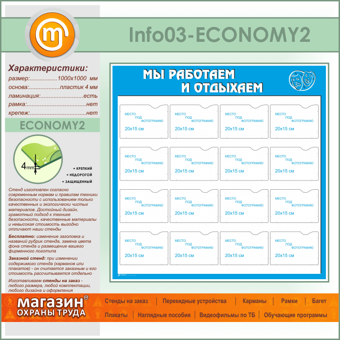 Стенд «Мы работаем и отдыхаем» с 16 карманами А5 формата (IN-03-ECONOMY2) в Нижнекамске купить