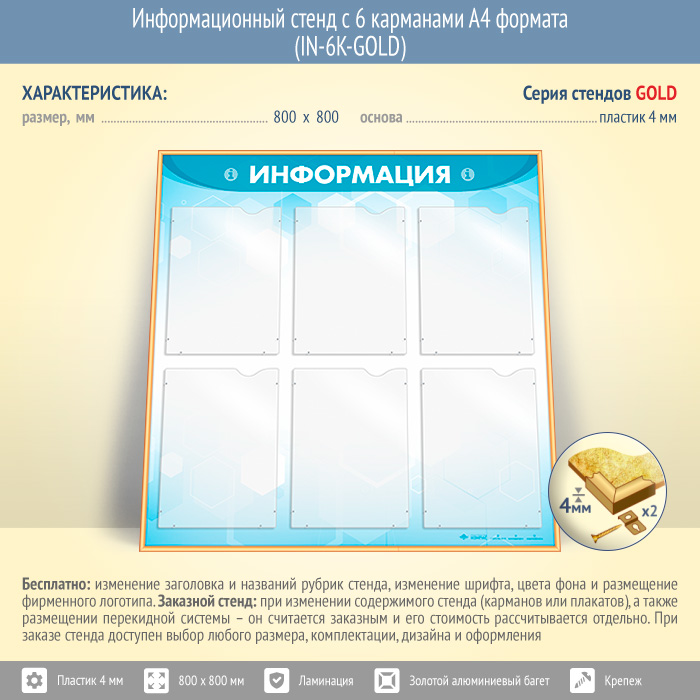 Информационный стенд с 6 карманами А4 формата (IN-6K)