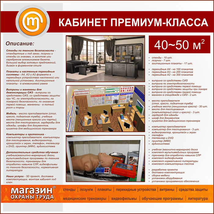 Предлагаем на выбор три класса кабинетов по охране труда на 40-50 кв.м. - эконом, бизнес и премиум