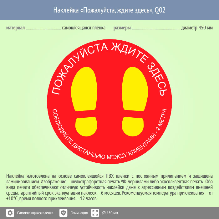 Наклейка на пол «Пожалуйста, ждите здесь», Q02 (пленка c ламинированием, диаметр 450 мм) в Нижнекамске купить