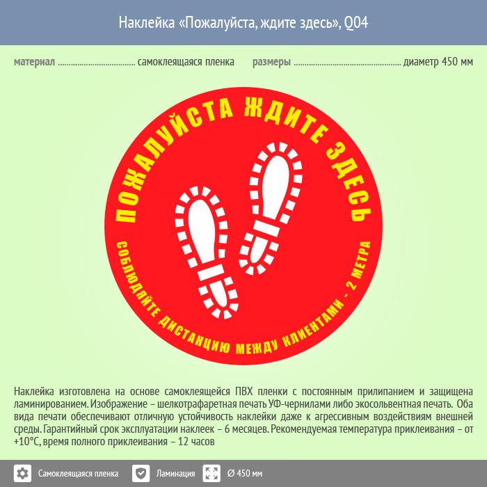 Наклейка на пол «Пожалуйста, ждите здесь», Q04 (пленка c ламинированием, диаметр 450 мм) в Нижнекамске купить