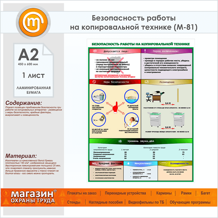 Плакат «Безопасность работы на копировальной технике» (М-81, ламинированная бумага, А2, 1 лист) в Нижнекамске купить