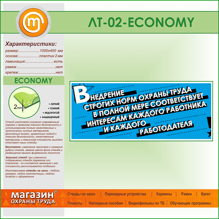 Лозунг «Внедрение строгих норм охраны труда...» (LT-02-ECONOMY) в Нижнекамске купить