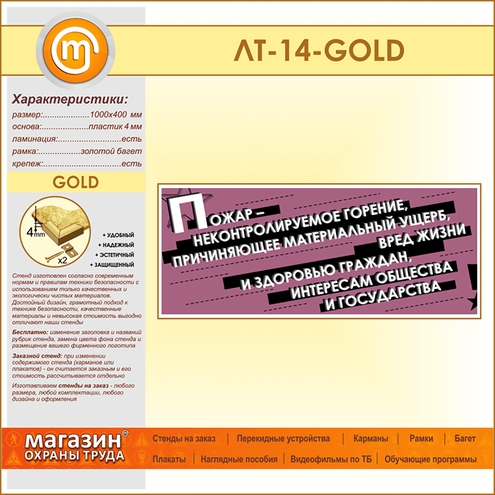 Лозунг «Пожар - неконтроллируемое горение...» (LT-14-GOLD) в Нижнекамске купить