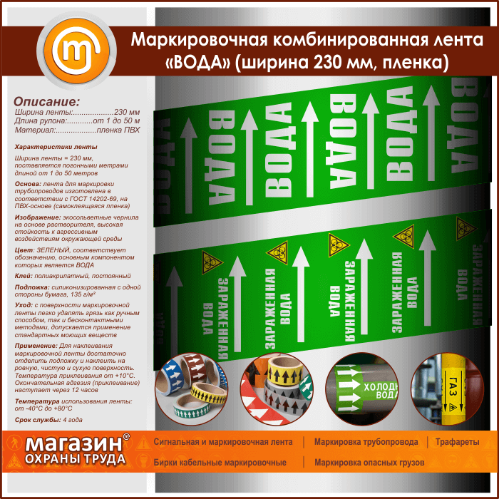 Маркировочная комбинированная лента «ВОДА» (ширина 230 мм, самоклеящаяся плёнка) в Нижнекамске купить