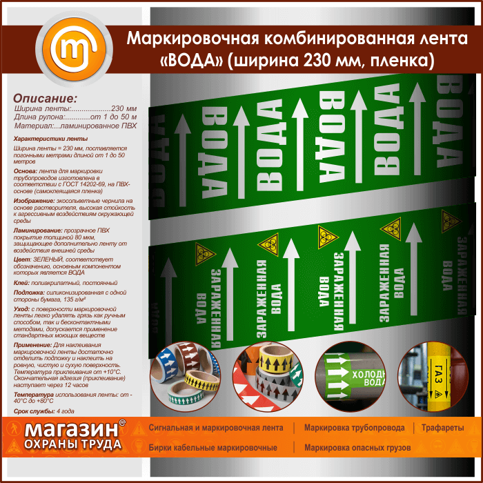 Маркировочная комбинированная лента «ВОДА» (ширина 230 мм, самоклеящаяся плёнка с ламинированием) в Нижнекамске купить