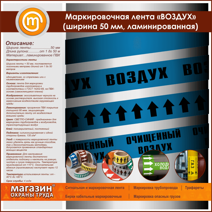 Маркировочная лента «ВОЗДУХ» (ширина 50 мм, самоклеящаяся плёнка с ламинированием) в Нижнекамске купить