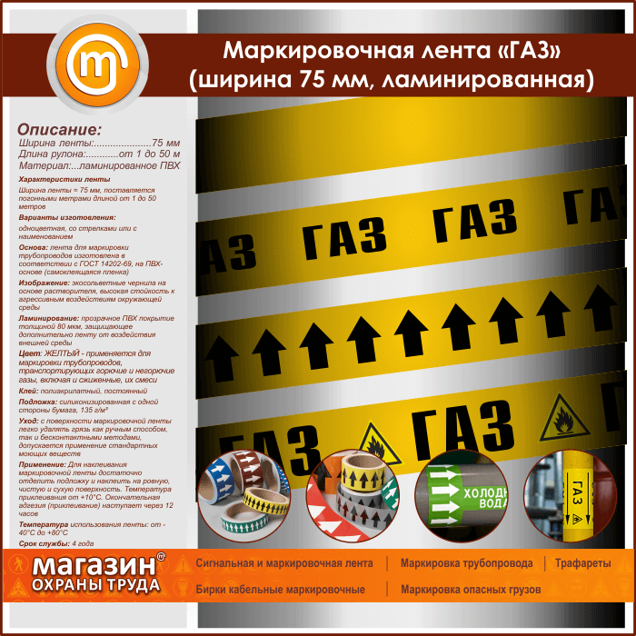 Маркировочная лента «ГАЗ» (ширина 75 мм, самоклеящаяся плёнка с ламинированием) в Нижнекамске купить