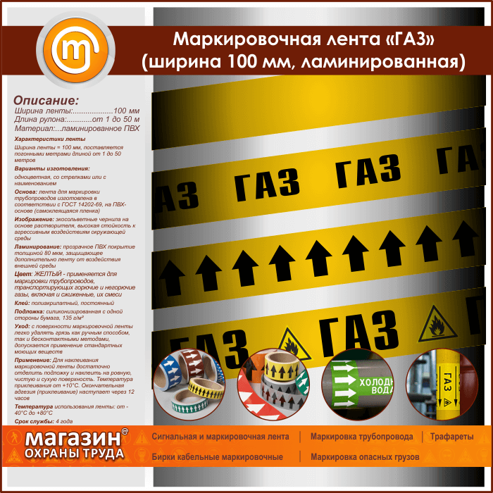 Маркировочная лента «ГАЗ» (ширина 100 мм, самоклеящаяся плёнка с ламинированием) в Нижнекамске купить