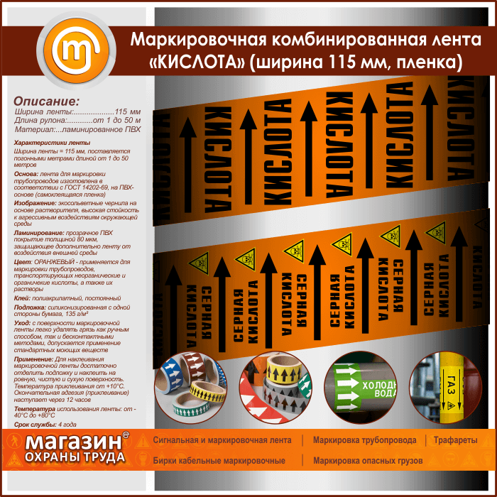 Маркировочная комбинированная лента «КИСЛОТА» (ширина 115 мм, самоклеящаяся плёнка) в Нижнекамске купить