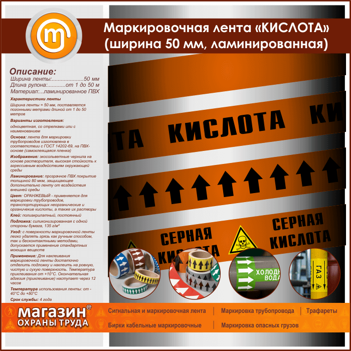 Маркировочная лента «КИСЛОТА» (ширина 50 мм, самоклеящаяся плёнка с ламинированием) в Нижнекамске купить