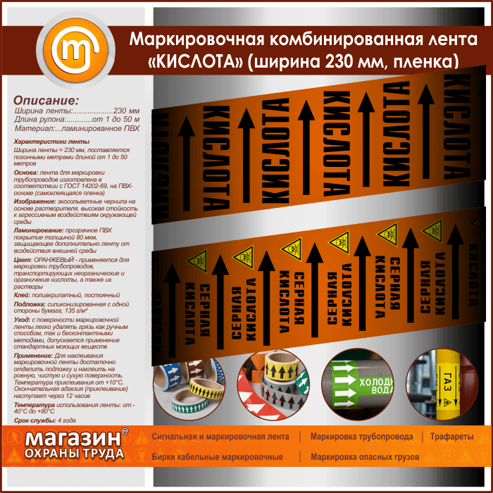 Маркировочная комбинированная лента «КИСЛОТА» (ширина 230 мм, самоклеящаяся плёнка с ламинированием) в Нижнекамске купить