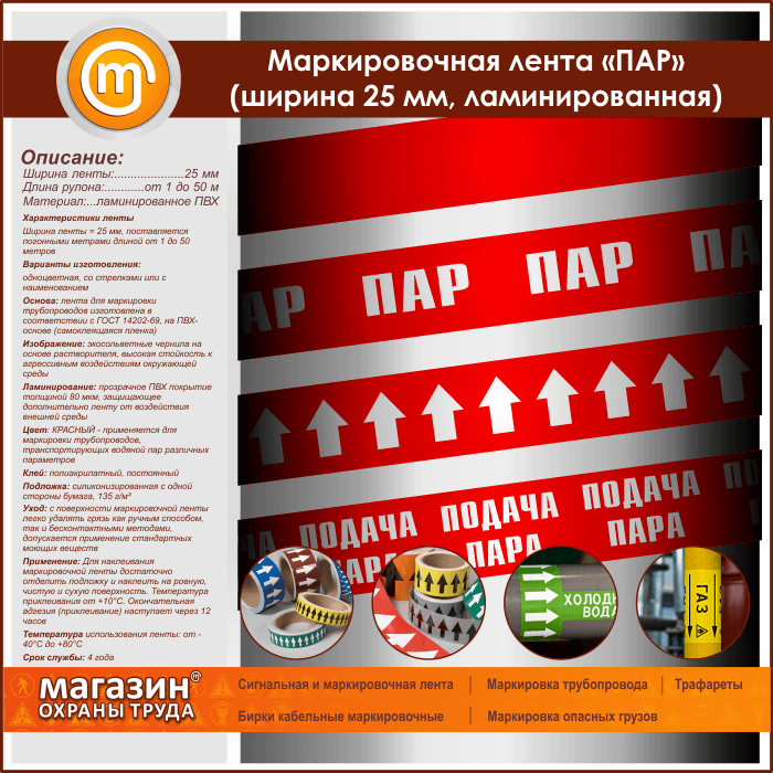 Маркировочная лента «ПАР» (ширина 25 мм, самоклеящаяся плёнка) в Нижнекамске купить
