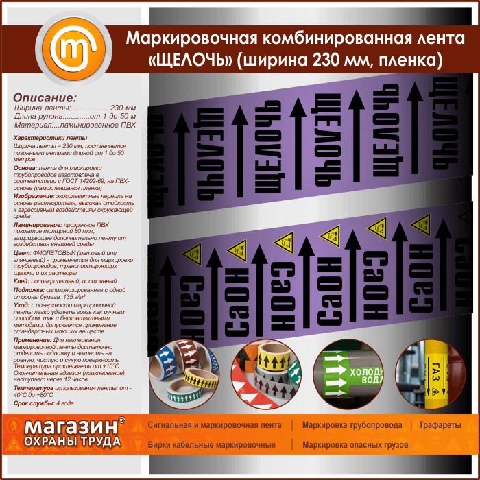 Маркировочная комбинированная лента «ЩЕЛОЧЬ» (ширина 230 мм, самоклеящаяся плёнка) в Нижнекамске купить
