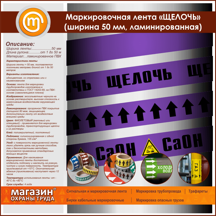 Маркировочная лента «ЩЕЛОЧЬ» (ширина 50 мм, самоклеящаяся плёнка с ламинированием) в Нижнекамске купить