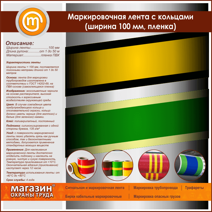 Маркировочная лента с кольцами (ширина 100 мм, самоклеящаяся плёнка) в Нижнекамске купить