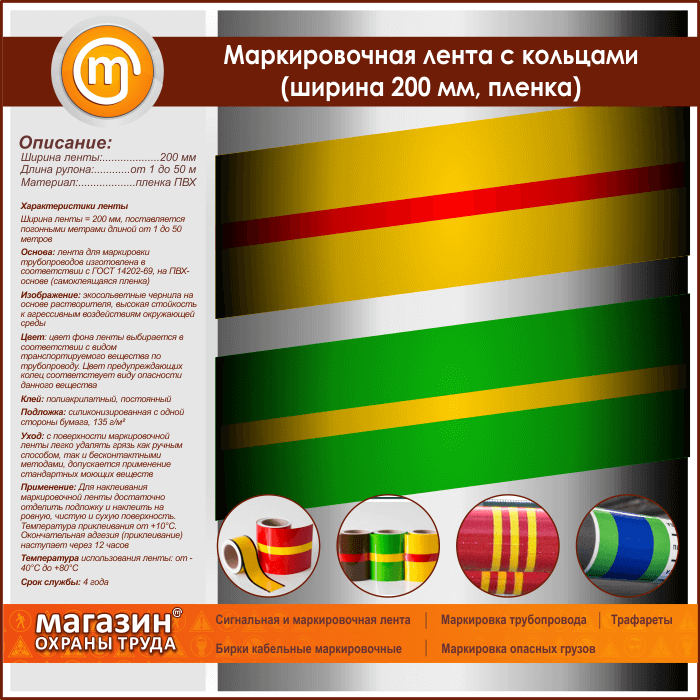 Маркировочная лента с кольцами (ширина 200 мм, самоклеящаяся плёнка) в Нижнекамске купить