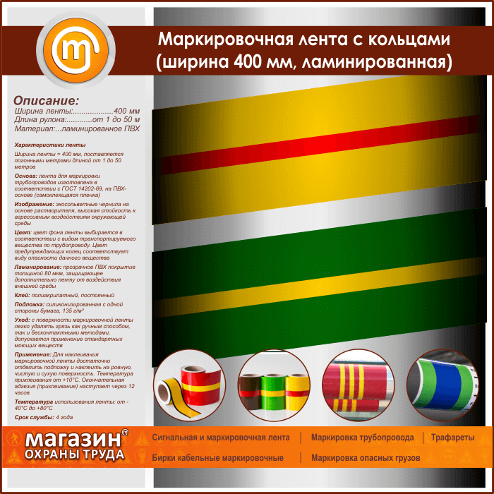 Маркировочная лента с кольцами (ширина 400 мм, самоклеящаяся плёнка с ламинированием) в Нижнекамске купить