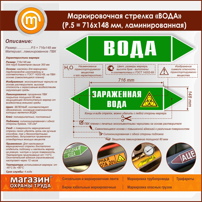 Маркировочная стрелка «ВОДА» (P.5 = 716х148 мм, самоклеящаяся плёнка с ламинированием) в Нижнекамске купить