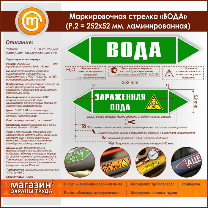 Маркировочная стрелка «ВОДА» (P.2 = 252х52 мм, самоклеящаяся плёнка с ламинированием) в Нижнекамске купить