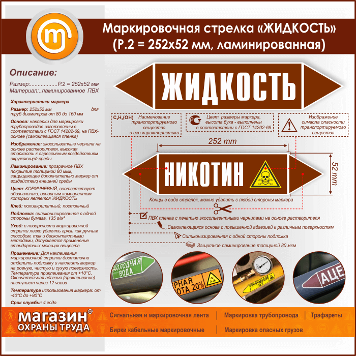 Маркировочная стрелка «ЖИДКОСТЬ» (P.2 = 252х52 мм, самоклеящаяся плёнка с ламинированием) в Нижнекамске купить